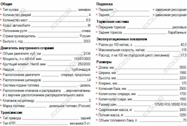 | ГАЗ 322132 2.9 | минивэн (4 дв.) | 2890 см3 | 110 л.с. | 2003 – н.в. |