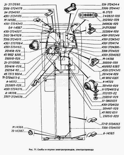 Схема 1 — электрооборудование щитка, панели приборов ГАЗ 3306