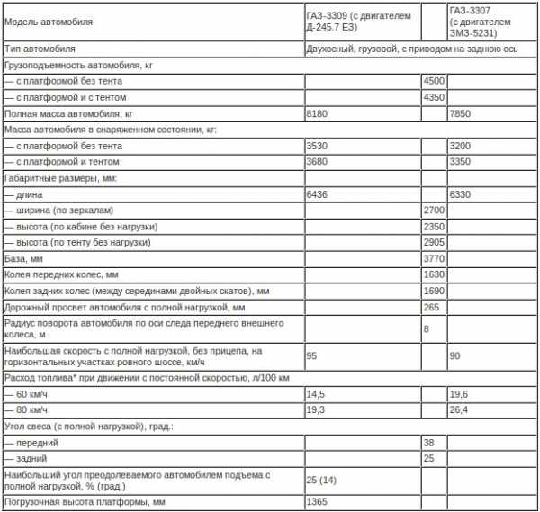 - Технические данные ГАЗ 3307 и модификаций