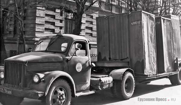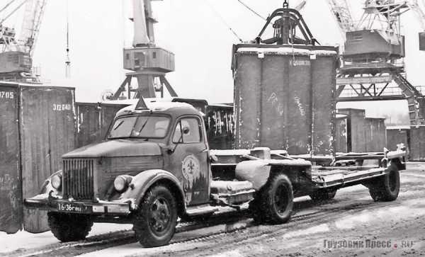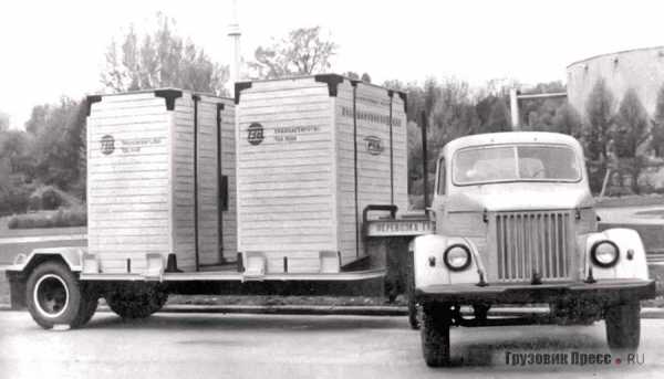 Здесь необходимо небольшое отступление. В те годы очень бурными темпами развивалась и строительная индустрия, нуждавшаяся в специализированном автотранспорте. Так, стандартное оборудование помещений с использованием воды обычно требовало значительных затрат и времени на установку. Поэтому в типовых многоквартирных домах было целесообразно применять сборные объёмные санитарно-технические кабины высотой на этаж, с полами и потолками, со смонтированными трубопроводами и электропроводкой. Внешне эти сантехнические кабины в упаковке напоминали те же ж/д контейнеры, а по весу были значительно легче последних.