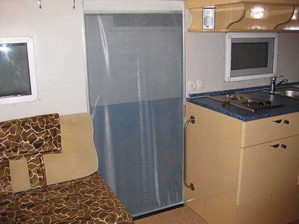 В доме на колёсах есть большая жилая комната со всем необходимым: холодильником, газовой плитой, раковиной, горячей-холодной водой, телевизорам, DVD, отопителем (Вебасто), 5 спальных мест, пластиковые окна, москитные сетки и др. Установлена электростанция «Хитачи» 2.4 кВт 220 V. Две огромные палатки с дверьми, окнами и отопителями.