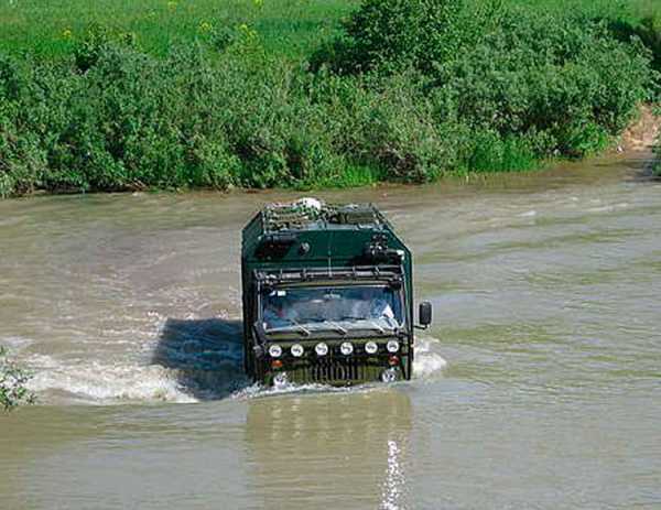 Под капотом мотор ЗМЗ-513 V8 4.3 — 115лс./270нм. ( Если вас не радует мотор ЗМЗ, то можно поставить двигатель Cummins-180 ) в паре 4cт. несихронизированной, механической коробкой передач. Максималка — 95км/ч. И конечно же полный привод…. с жестко подкл. передним мостом. Клиренс — 315 мм. Так же была система подкачки шин, полезная вещь.