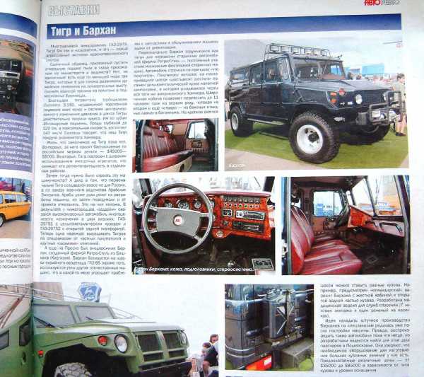 <<< Настоящими «крутыми гвоздями» или, по-цивилизованному, «шоу-стопперами» автомобильной экспозиции MIMS стали весьма воинственные супервнедорожники ГАЗ «Тигр» и «Бархан», первый из которых (c бронированным кузовом и дизелем Cummins-180) был изготовлен еще пару лет назад для богатого восточного заказчика из Эмиратов и там же впервые показан на военном шоу в Абу-Даби, а другой родился в Киргизии на фирме «Ретростиль». >>> «Третий рим» — Обзор MIMS’2002 .