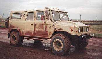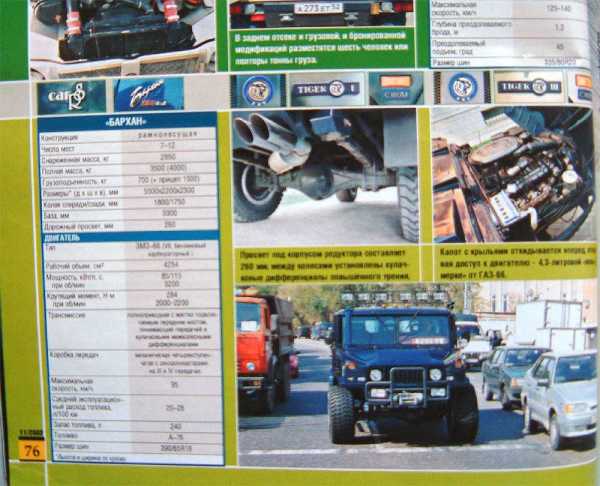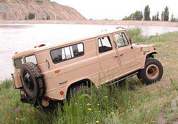 <<< Другой «наш ответ» «Хаммеру» — чудовище по имени «Бархан». Его сделала группа умельцев где-то в Киргизии (отсюда, вероятно, и название) из серийного «ГАЗ 66». Это мощь и комфорт, завернутые в оболочку брутальности. «Смотри, «Хаммер»! — говорили все, кто подходил к нему. И даже вблизи не всегда понимали, что ошиблись. Какой там «Хаммер»? Он и рядом не лежал! Возможно, скоро производство таких «Барханов» начнется в России. >>>