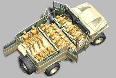 Основные из них: вместимость не меньше 6 человек (без использования дополнительных сидений), снаряженная масса автомобиля не должна превышать 3000 кг; рабочий объем и мощность штатного двигателя должны быть не меньше 4л и 150 л\с соответственно; обязательно наличие независимой подвески всех колес и колесных редукторов.
