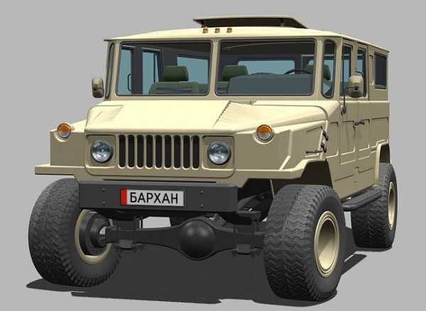 Большой «УАЗик» на десять персон… Так вкратце можно охарактеризовать эту нашу разработку :))… Действительно, машина по силуэту напоминает родного «козлика»… Кто-то сразу видит в нем «шестьдесят шестой», а кому может пригрезится и «Хаммер»… Но, это — «Бархан»!!!
