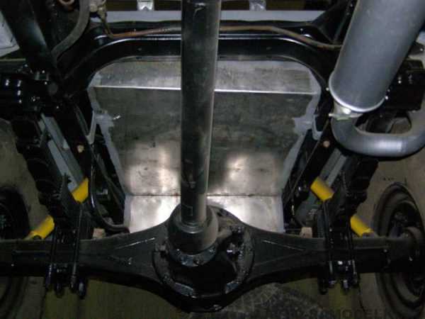 Задний бампер изготовлен из листового метала толщиной 1,5 мм из двух частей. Посередине имеется существующий фаркоп ГАЗ-66 и дополнительный шаровой фаркоп.
