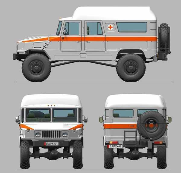 Возможен вариант кузова и без верхней надстройки и специального оборудования. Этот «Бархан» используется как машина дополнительного медицинского сопровождения. Равно как и все версии, машина может быть оснащена «подкачкой» колес и лебедкой.