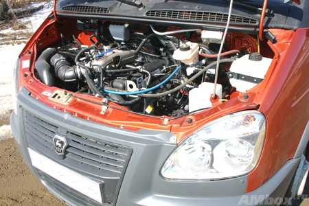 В моторном отсеке обновленной «ГАЗели» – уже знакомая по предыдущим версиям автомобиля 2,9-литровая рядная бензиновая «четверка» из Ульяновска, характеристики которой заметно изменились для улучшения приемистости и тяговитости на низких оборотах за счет новой программы управления впрыском. Максимальная мощность двигателя составляет 106,8 л.с. (78,5 кВт), и доступна она при 4000 об./мин., а наибольшие 220,5 Нм крутящего момента мотор выдает при 2500 оборотах в минуту.