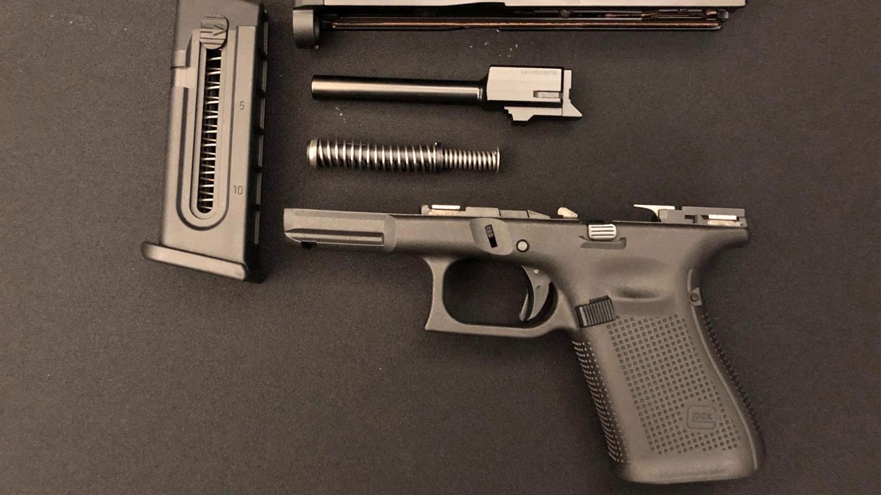 Полностью разобранный GLOCK 44: он состоит из того же количества деталей, что и G19.