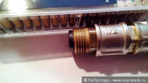 Этап 1. Взять ½ дюймовое окончание металлопластиковой трубы с наружной резьбой, снять гайку и уплотнительное латунное кольцо, прокладки.