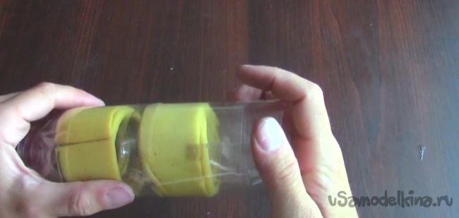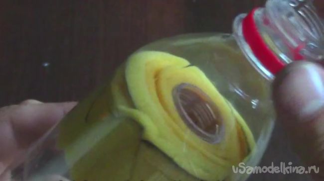 Далее берем поролон и наматываем его на короткое горлышко бутылки. По словам автора идеи, очень важно использовать именно поролон, чтобы получить лучший эффект.