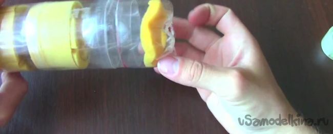 Аналогичным образом крепим третью бутылку.