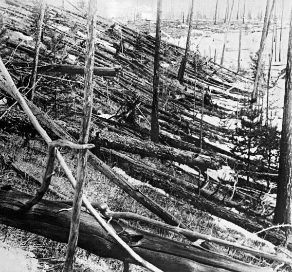 Вывал леса в районе падения Тунгусского метеорита. Фото: РИА «Новости».