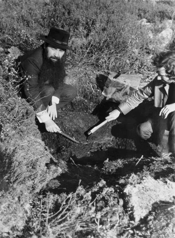 Советский ученый А. Золотов (слева) берет образцы грунта на месте падения тунгусского метеорита. Фото: РИА «Новости».