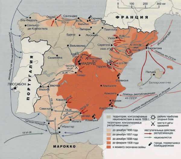К лету 1937 г. войска Франко захватили промышленный север страны. Под контролем республиканцев оставалось не более трети территории Испании.