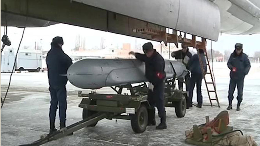 - Загрузка крылатой ракеты X-101 в бомбардировщик-ракетоносец