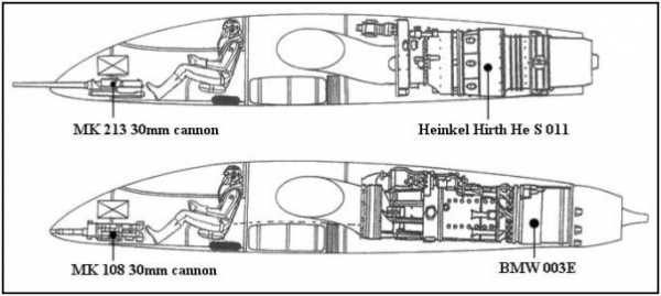 Тип двигателя : 2 ТРД Junkers Jumo-004В-1, 2, 3