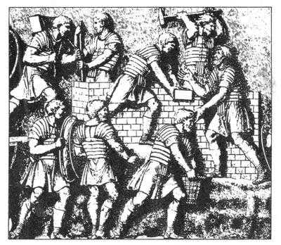 строят укрепление. Рельеф на колонне