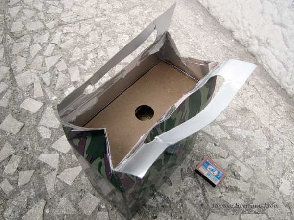 Сейчас сухие пайки выпускаются именно в таких картонных упаковках, покрытых изнутри фольгой. Мне подобный вариант не нравится, т.к. коробка менее стойка к повреждениям, чем используемая ранее пластиковая. Например, в рассматриваемом варианте очень быстро надорвалась ручка, хотя за нее я активно и не дергал.