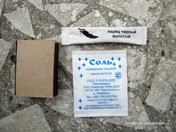 Черный молотый перец и соль. Я никогда не желал поперчить или посолить сухпай, поэтому смысла в них особого не вижу (соль, правда, можно для обычной еды использовать), но любители острого точно будут рады. Что перец, что соль, опять же в бумажных пакетиках, что не позволяет их сохранить про запас в полевых условиях.