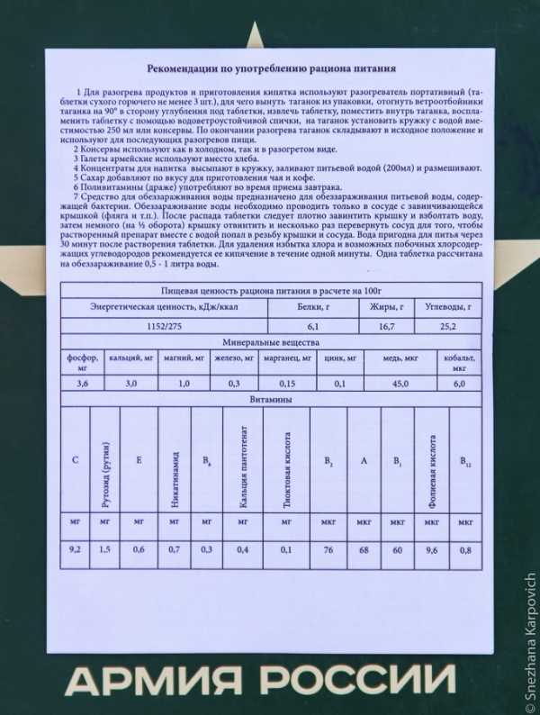 Инструкция по применению сухпайка