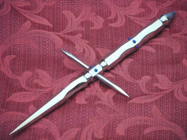 Все это многообразие лезвий позволяло комбинировать приемы, как на дальней дистанции, так и вплотную. Кинжалом рукояти можно бить обратными движениями, серпом — гардой не только резать противника, но и бить по-кастетному.