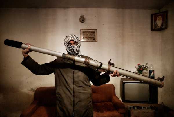 Боец иракского сопротивления демонстрирует самодельное устройство для запуска ракет земля-воздух. В качестве снарядов используются ракеты советского и иракского производства, переделанные для поражения наземных целей. Боевики также используют мины, начиненные предположительно отравляющими веществами. Багдад, 4 декабря 2003 года.