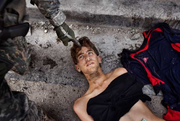 Женщины-шиитки просят освободить раненного в перестрелке суннита, которого допрашивают американские солдаты из 2-го батальона 506-го пехотного полка 101-й десантной дивизии. У пленного были найдены маска и автомат АК-47. Багдад, 28 сентября 2006 года.