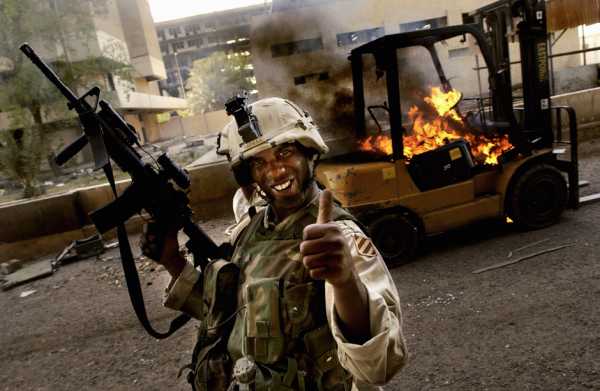 Американский солдат доволен поимкой мародеров. Багдад, 2003 год.