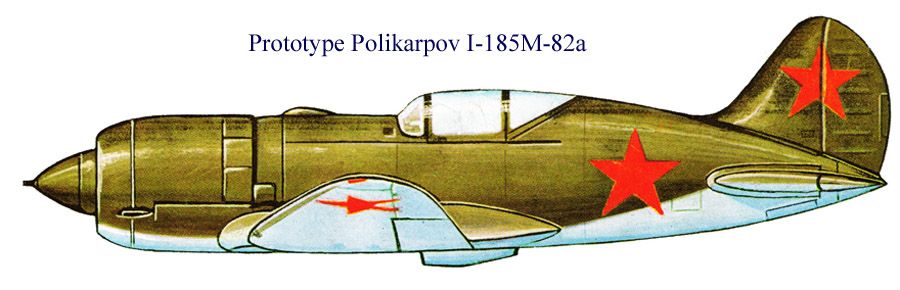 - И-185 М-82А — один из прототипов с серийным двигателем М-82 (1700 л.с.). Проходил войсковые испытания.