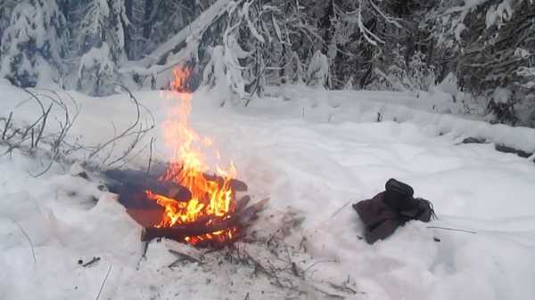 В зимней тайге костер первый помощник. Возле него можно согреться, приготовить пищу, высушить одежду, а еще огонь отгоняет диких животных. Для разведения костра понадобятся спички, сухой хворост или береста, сухие дрова. Если есть горючее — хорошо, с его помощью распалить огонь будет легче. Если предстоит ночевка в лесу, дров понадобится столько, чтобы дотянуть до утра.