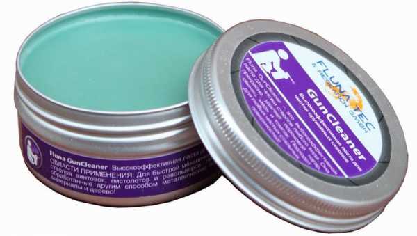 Используют также ружейную пасту. Она действует как нейтрализатор активных продуктов сгорания пороха, удаляет нагар и борется с коррозией, восстанавливает блеск лакированных и металлических поверхностей. Однако из-за того, что в своем составе пасты содержат абразивные частички, неосторожное использование может привести к повреждению канала ствола. Использовать пасты лучше в самых запущенных случаях, когда другие средства не справляются.