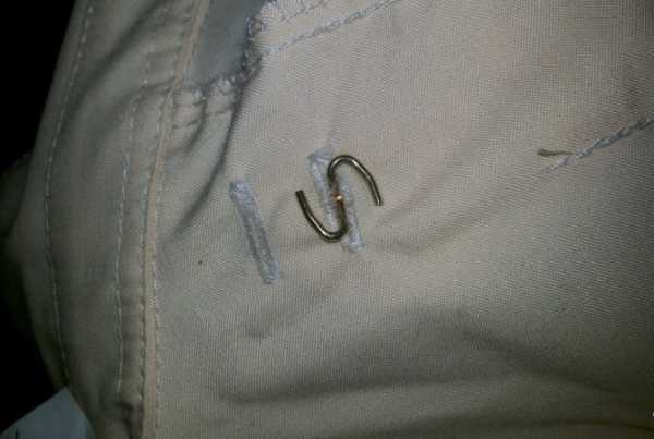 - Булавка. Данный способ не очень надежен. Зафиксированный булавкой знак различия постоянно смещается. Перед тем, как прикрепить пуговицу к погонам, булавку приходится изгибать, чтоб она лучше их удерживала. Это приводит к тому, что крепеж нередко раскрывается.
