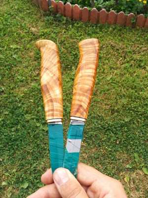 После этого был выбран материал рукояти — березовый кап, как наиболее удобный и качественный материал для рукояти, на мой взгляд лучший. Хотя и немного запарный в обработке по причине его колоссальной прочности.