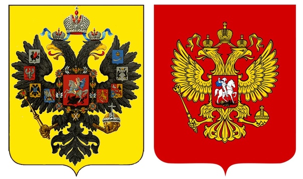 Византийский орел изображался золотым на красном фоне, как в гербе РФ, а «имперские» орлы, и российский, и германский, черными на желтом фоне.