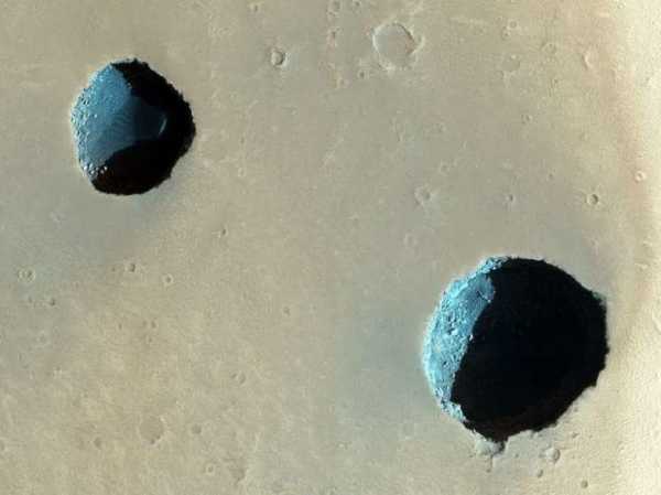 Обвалившиеся лавовые трубки в регионе Тарсис: