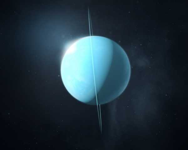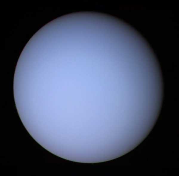 Уран — ледяной гигант с радиусом 25 559 километров. На небосклоне представлял бы собой огромное, однотонное голубое пятно.