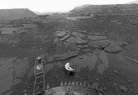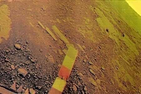 Фотографии поверхности Венеры, сделанные советскими аппаратами «Венера — 13» и «Венера — 14»