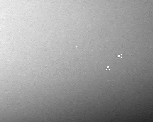 А вот еще одно изображение марсианского неба. Более яркая точка Венера, менее яркая (на которую указывают стрелочки) — наша родная планета