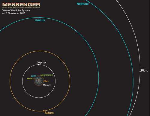 Данный портрет Солнечной системы был сделан аппаратом MESSENGER, находящимся на орбите вокруг Меркурия в ноябре 2010 года. На составленной из 34 снимков мозаике видны все планеты Солнечной системы, кроме Урана и Нептуна, которые находились слишком далеко, чтобы быть зафиксированными. На снимках можно разглядеть Луну, четыре главных спутника Юпитера и даже кусочек Млечного пути.