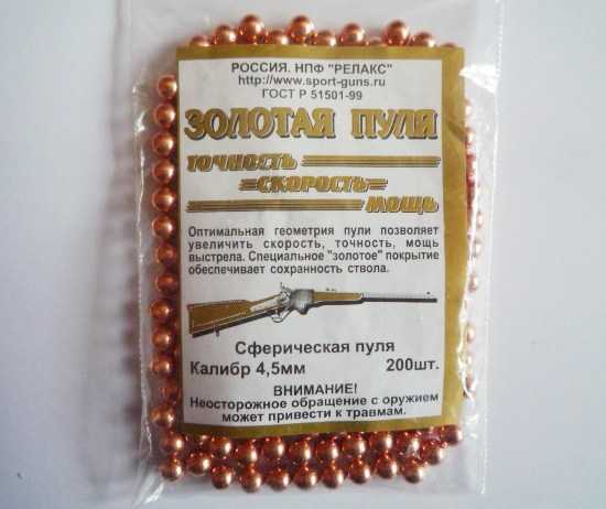 Поэтому, используя омедненные шарики «золотая пуля» можно быть уверенным как в баллистических характеристиках, так и в надежной работе и сохранности самого пневматического оружия.