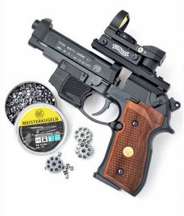 Для 92 FS — профессиональные свинцовые пульки «Meisterkugeln Professional Line 4.5mm, 7.0 gr.» (11,95 долл. За 500 шт.) и матчевые пульки из сплава «Sig Sauer Match Ballistic Alloy, 5.25 gr.» (34,95 долл. за 500 шт.).