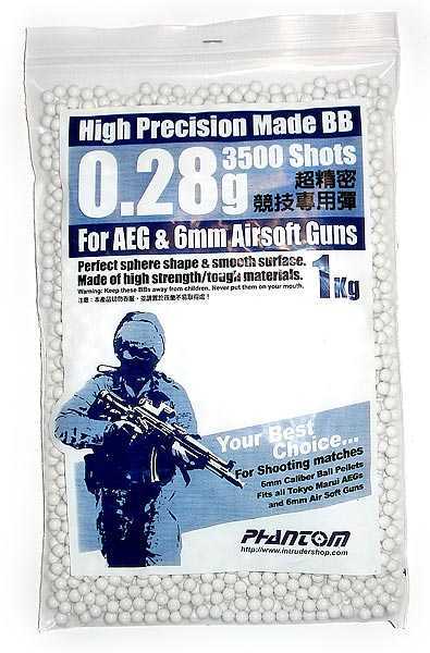 0.20g BBs летят быстрее, а 0.28g BBs передают большее количество энергии при попадании, при сравнительно одинаковой точности. Счастливым обладателям средних тюнингов всё же лучше остановить свой выбор на шариках массой 0.28g.