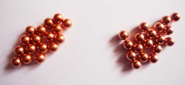 Проведем некоторые тесты омедненных шариков «золотая пуля». Одновременно для тестирования, была вскрыта упаковка омедненных шариков другого производителя. На следующим фото представлены шарики двух производителей. Возможно, на фотографии не очень заметно, но шарики «золотая пуля» расположенные справа, более светлые и золотистые, возможно потому, что обладают большей стойкостью к окислению.