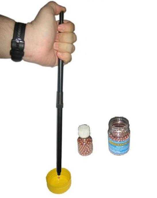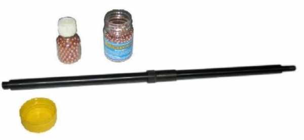 Ставим ствол вертикально, и по очереди опускаем шарики. При отпускании шарика, закрываем входное отверстие ствола, и засекаем время прохода шарика. Время прохождения шарика характеризует качество изготовления шариков, то есть их сферичность и точность изготовления, что в конечном итоге влияет на баллистические характеристики.