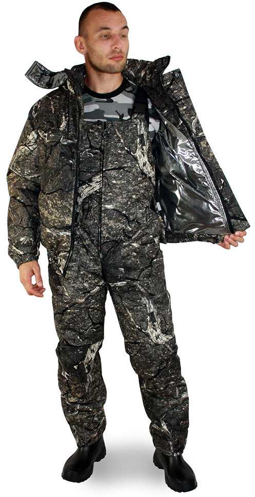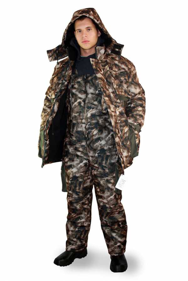 - тип покроя одежды, вариант которого диктуется охотой. Удобным решением станет комбинезон, который позволит долго сидеть в засаде. Если охота планируется более динамичной, лучше отдать предпочтение полукомбинезону и куртке. Длина куртки обязательно должна быть чуть выше колена. Короткие или слишком длинные модели окажутся непрактичными, поэтому для охоты не подойдут;