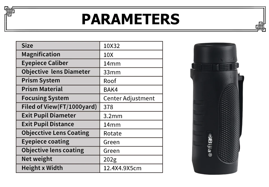BAIGISH 12X45/8X30/10X40. Оптический прибор имеет прочный корпус из металла и надежные линзы.