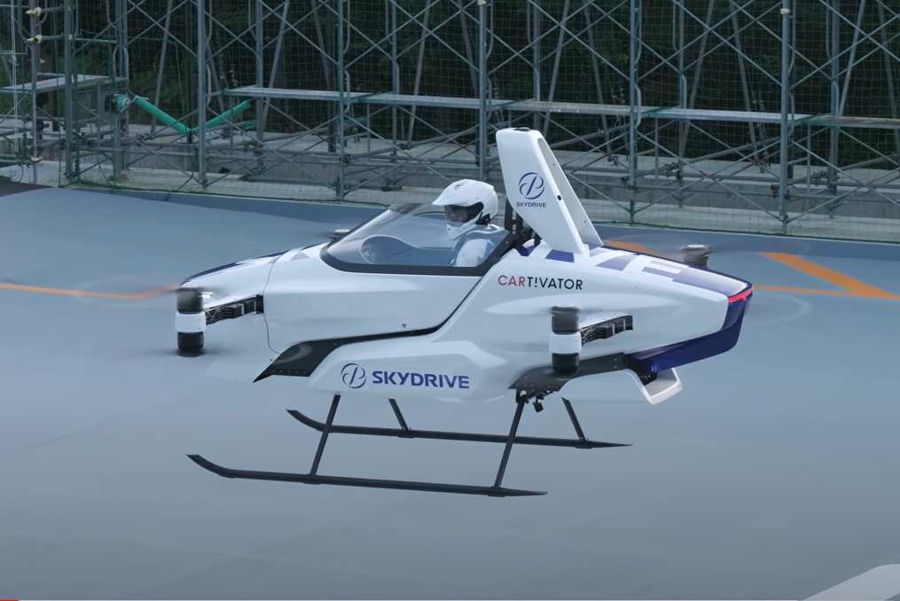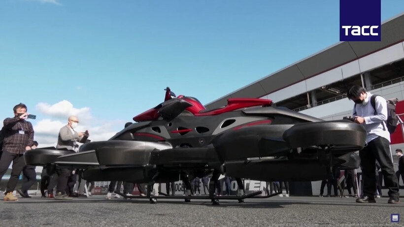 Одноместный аппарат поднимают в воздух восемь несущих винтов, расположенных по бокам от пилота.