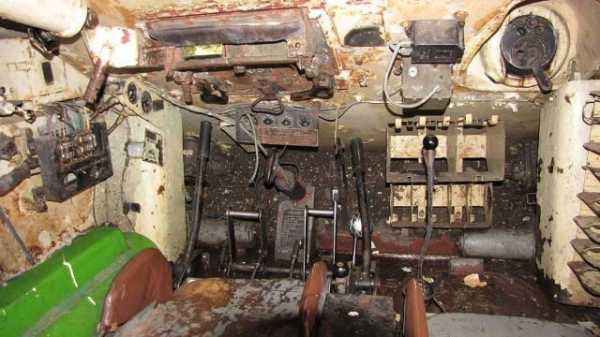 Общий вид на боевое отделение с места заряжающего. В крыше башни виден наблюдательный прибор МК-4. Под ним — магазины для спаренного пулемета ДТ